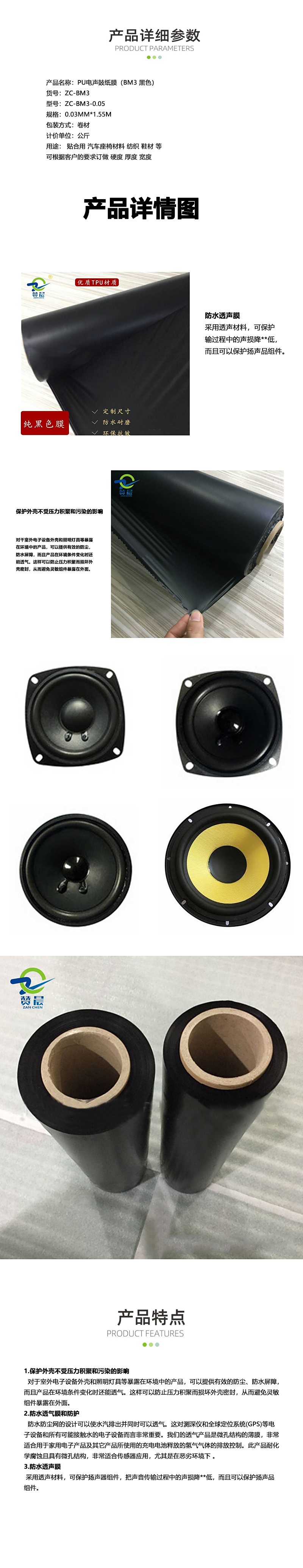 電聲膜音響膜黑色單霧面TPU膜環(huán)保耐溫喇叭tpu薄膜